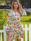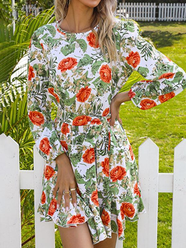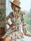 Deze charmante mini jurk met bloemenprint en ceintuur biedt een elegante uitstraling en comfortabele pasvorm. Perfect voor zomerse uitjes, met lange mouwen en een speelse rimpelzoom.