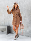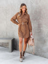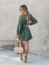 Deze stijlvolle mini jurk in effen kleur heeft een V-hals en een ceintuur voor een elegante pasvorm. Perfect voor casual gelegenheden, met een comfortabele en modieuze uitstraling.