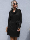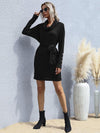 Deze stijlvolle mini jurk met coltrui en ribbelstructuur biedt een elegante en comfortabele pasvorm. Perfect voor zowel casual als feestelijke gelegenheden, met een geknoopte tailleband voor een flatterend silhouet.