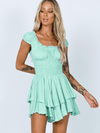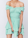 Deze charmante mini jurk met elastische taille en speelse ruches biedt een flatterende pasvorm en vrouwelijke uitstraling. Ideaal voor zowel casual uitjes als semi-formele evenementen.