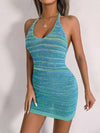 Deze stijlvolle mini jurk met halterhals en gestreept patroon biedt een elegante en nauwsluitende pasvorm. Perfect voor zomerse stranduitjes en casual avonden, met een chic en veelzijdig ontwerp.