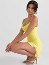 Deze stijlvolle mini jurk met halternek en speelse ruches biedt een flatterende pasvorm. Perfect voor feestjes en speciale gelegenheden, met een elegante open rug voor een vrouwelijk accent.