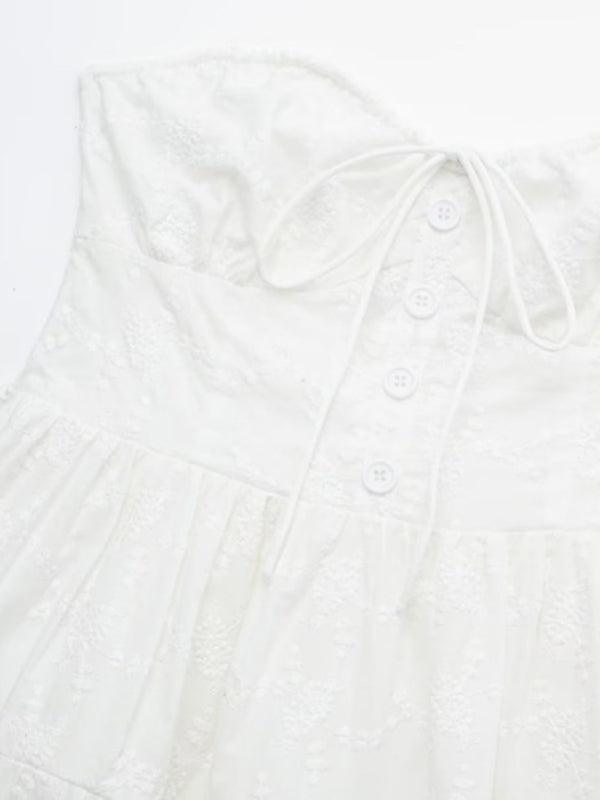 Deze elegante mini jurk met een strapless ontwerp en delicate kantstructuur biedt een stijlvolle en comfortabele pasvorm. Perfect voor zowel casual als semi-formele gelegenheden, met een vrouwelijke uitstraling die soepel meebeweegt.