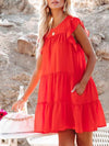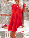 Deze charmante mini jurk in effen kleur biedt een luchtige en comfortabele pasvorm. Ideaal voor casual zomerdagen, met korte mouwen en een speelse uitstraling.