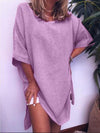 Deze stijlvolle mini jurk in effen kleur biedt ultiem comfort met een losse pasvorm en luchtige mouwen. Perfect voor zomerse dagen en casual uitjes, een veelzijdige keuze voor elke garderobe.