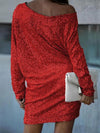 Deze stijlvolle mini jurk met een schouderontwerp en pailletten biedt een elegante en comfortabele pasvorm. Perfect voor avondfeesten, met een opvallende uitstraling die glamour en comfort combineert.