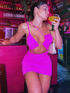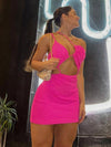 Deze opvallende mini jurk met one-shoulder ontwerp en trendy uitsnijding biedt een sexy en stijlvolle look. Perfect voor een avondje uit of speciale gelegenheden, met een nauwsluitende pasvorm die het vrouwelijke silhouet accentueert.