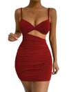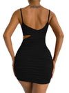 Deze stijlvolle mini jurk met open taille en rimpeldetail biedt een flatterende pasvorm die je figuur accentueert. Perfect voor een avondje uit, met een sexy en moderne uitstraling.