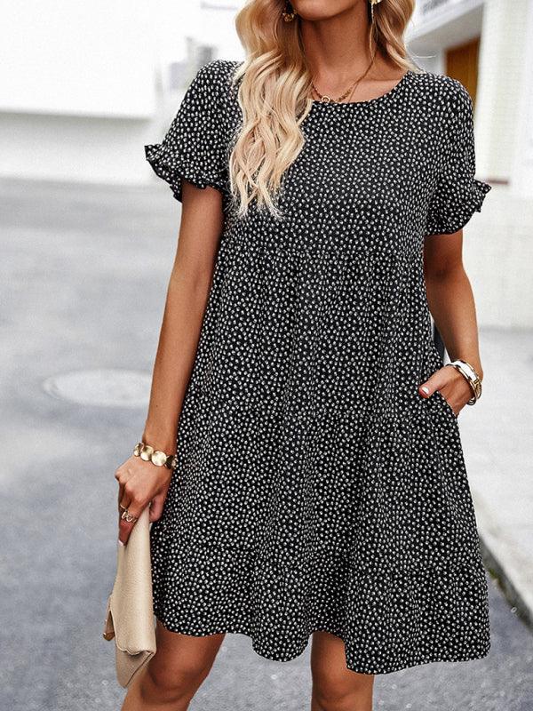 Mini Jurk met Rimpelmouwen en Bloemenprint - Mini Dresses - Jurkjes.co