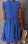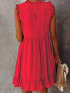 Deze charmante mini jurk met ronde hals en ruches biedt een speelse en stijlvolle uitstraling. Perfect voor zowel casual als feestelijke gelegenheden, met een comfortabele pasvorm die je figuur flatteert.