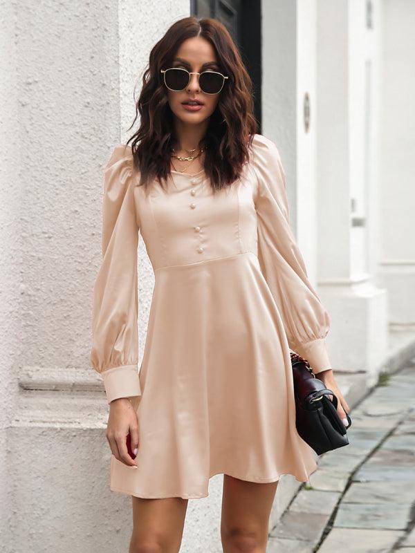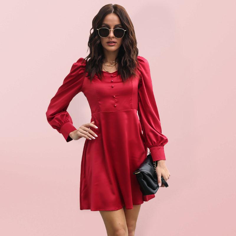 Deze elegante mini jurk met ronde hals en luchtige mouwen biedt een verfijnde uitstraling. De effen satijnen stof maakt het perfect voor zowel chique avonden als stijlvolle dagelijkse evenementen.