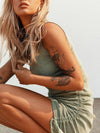 Deze stijlvolle mini jurk met een mouwloos ontwerp en elastische pasvorm biedt ultiem comfort en een flatterende look. Perfect voor feestjes en avondjes uit, met een minimalistische stijl die elegantie uitstraalt.