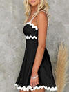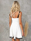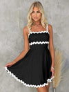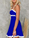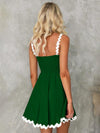 Deze speelse mini jurk met spaghetti bandjes en een flared rok biedt een comfortabele pasvorm voor zomerse uitjes. De effen kleur maakt het een veelzijdige keuze voor casual gelegenheden.