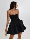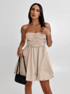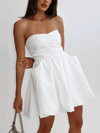 Deze stijlvolle mini jurk met strapless ontwerp en elastische taille biedt een comfortabele en veelzijdige look. Perfect voor casual uitjes en semi-formele evenementen, met praktische zijzakken voor extra gemak.
