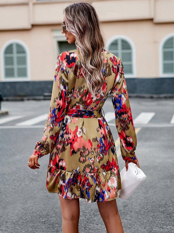 Mini Jurk met V-hals en Abstracte Print - Mini Dresses - Jurkjes.co