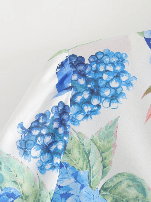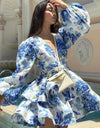 Deze speelse mini jurk met V-hals en luchtige mouwen heeft een elegante bloemenprint. Perfect voor tuinfeesten en zomerse avonden, met een comfortabele pasvorm en gelaagde rok.