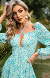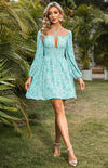 Deze charmante mini jurk met V-hals en bloemenprint biedt een elegante uitstraling en comfortabele pasvorm. Ideaal voor tuinfeesten en casual uitjes, met lange mouwen en een taille-gericht ontwerp.