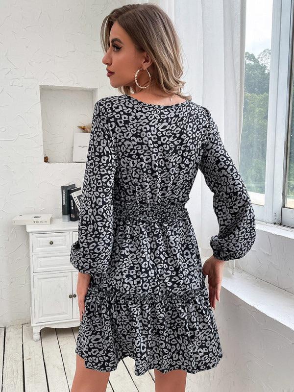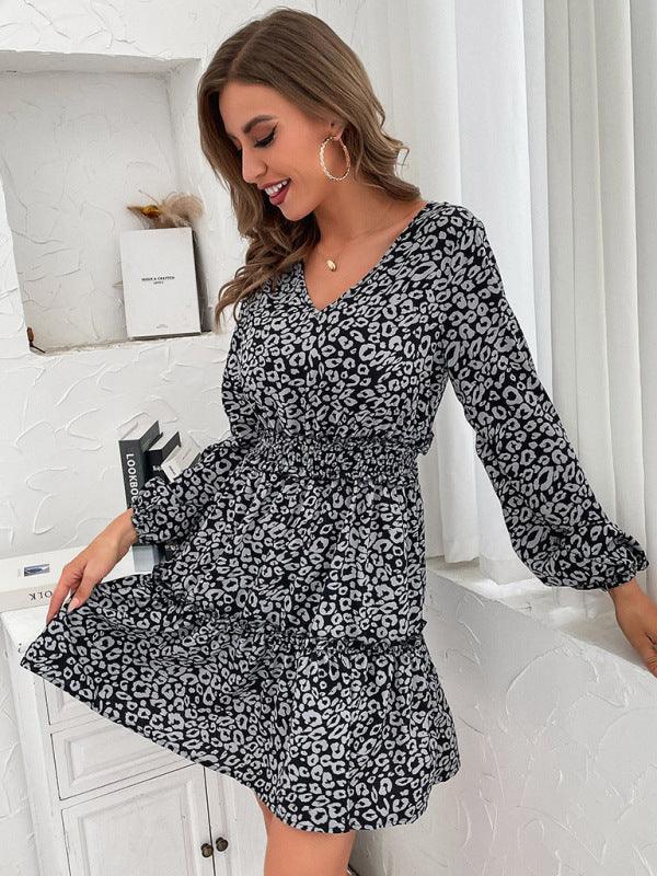 Deze trendy mini jurk met V-hals en speelse dierenprint biedt een comfortabele pasvorm dankzij de elastische taille. Ideaal voor zowel feestelijke als casual gelegenheden.