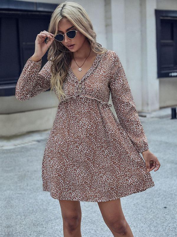 Deze stijlvolle mini jurk met V-hals en trendy dierenprint biedt een elegante uitstraling en comfortabele pasvorm. Ideaal voor casual gelegenheden en avonduitjes, met lange mouwen en een hoge taille voor een flatterende look.
