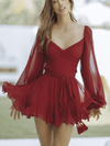 Mini Jurk met V-hals en Doorzichtige Mouwen - Mini Dresses - Jurkjes.co
