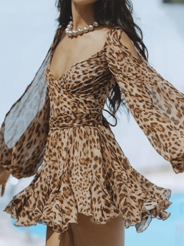 Mini Jurk met V-hals en Doorzichtige Mouwen