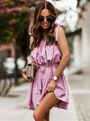 Deze stijlvolle mini jurk met V-hals en elastische taille biedt een flatterende pasvorm. Perfect voor zowel casual uitjes als speciale gelegenheden, met een comfortabele en elegante uitstraling.