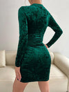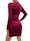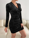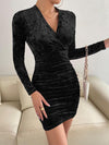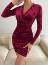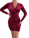 Deze luxueuze mini jurk met V-hals en fluweel biedt een elegante uitstraling. Perfect voor feestjes, met een flatterend wrap-design en nauwsluitende pasvorm.
