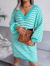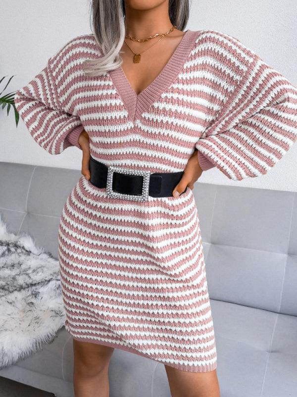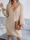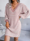 Deze stijlvolle mini jurk met V-hals en gestreept patroon biedt een comfortabele pasvorm en een trendy uitstraling. Ideaal voor zowel casual als semi-formele gelegenheden, met een elastische taille voor extra comfort.
