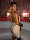 Deze glamoureuze mini jurk met V-hals en glanzende textuur accentueert je figuur en is perfect voor feestelijke gelegenheden. Voeg een vleugje glamour toe aan je outfit met deze nauwsluitende pasvorm.