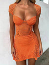 Deze verfijnde mini jurk met V-hals en kanten stof biedt een sexy en elegante uitstraling. Ideaal voor date nights en speciale gelegenheden, en eenvoudig te combineren met accessoires voor een complete look.