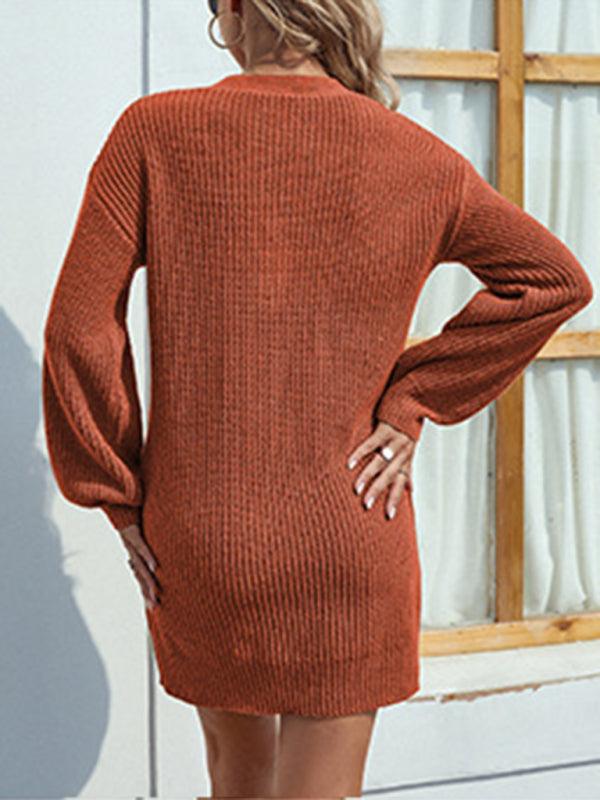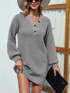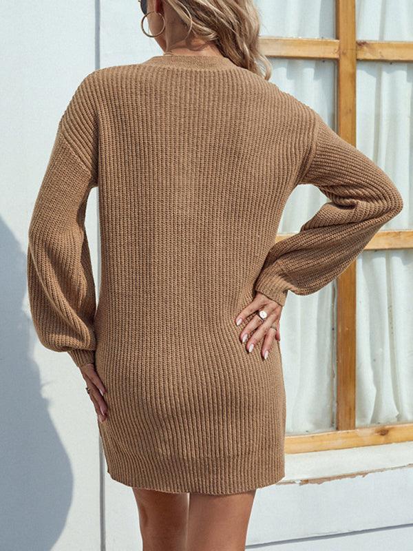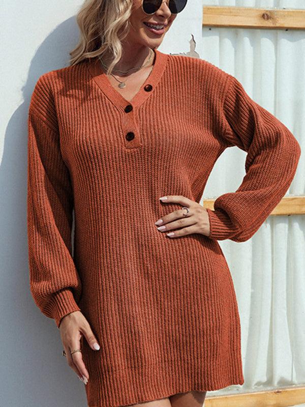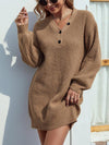 Deze stijlvolle mini jurk met V-hals en knoopdetails biedt een comfortabele en nauwsluitende pasvorm. Ideaal voor casual gelegenheden, met een trui-achtige stof die zowel warm als modieus is.