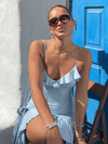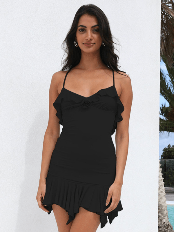Deze charmante mini jurk met V-hals en speelse rimpeldetails biedt een flatterende pasvorm. Ideaal voor feestjes of een avondje uit, met een comfortabele en stijlvolle uitstraling.