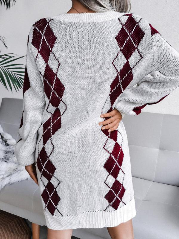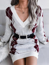 Deze stijlvolle mini jurk met V-hals en ruitpatroon biedt een comfortabele pasvorm voor gezellige uitjes. Ideaal voor casual bijeenkomsten of een stijlvolle avond, met een warme en trendy uitstraling.