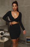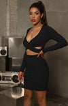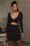 Deze stijlvolle mini jurk met V-hals en uitgesneden detail biedt een elegante en sexy uitstraling. Perfect voor avondgelegenheden, met een plooirok en lange mouwen voor een verfijnde look.