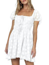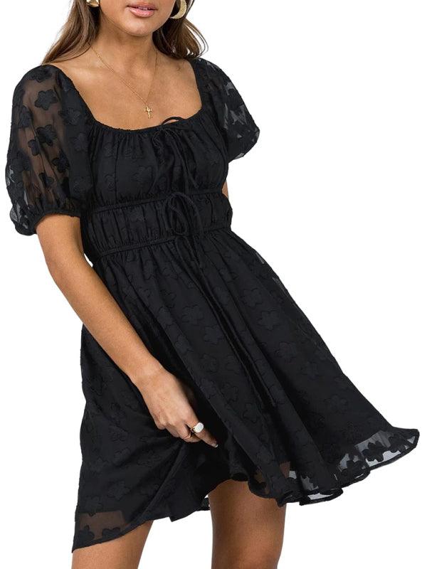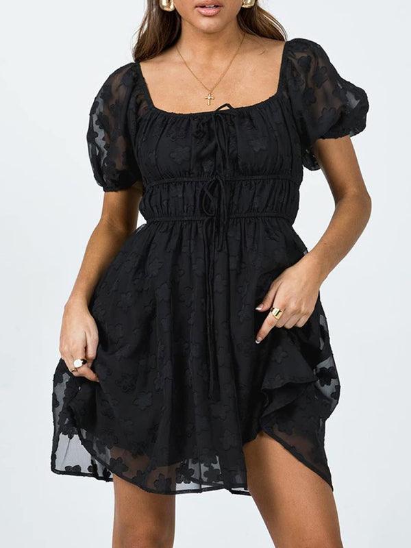 Deze charmante mini jurk met vierkante hals en bloemenprint biedt een elegante en comfortabele pasvorm. Perfect voor casual gelegenheden en romantische uitjes, met een speelse uitstraling die ideaal is voor zomerse dagen. Mini jurk, vierkante halslijn, bloemenprint, casual stijl, vrouwelijke jurk, zomerjurk, korte mouwen, getailleerde pasvorm, elegante jurk, dagelijkse outfit