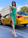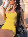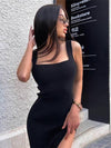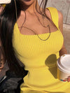 Deze stijlvolle mini jurk met vierkante hals en ribbelbrei biedt een flatterende pasvorm. Perfect voor een avondje uit, met een moderne uitstraling die eenvoudig te combineren is met accessoires.