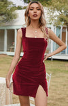 Deze stijlvolle mini jurk met vierkante hals en elegante sleuven biedt een verfijnde uitstraling. Perfect voor chique evenementen of een avondje uit, met een comfortabele en flatterende pasvorm.