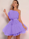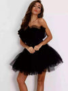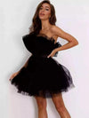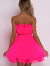 Deze speelse strapless mini jurk met een elegante strik en tutu rok biedt een verfijnde uitstraling. Perfect voor feestjes en speciale gelegenheden, met een comfortabele pasvorm die zorgt voor plezierige momenten.