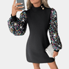 Deze chique tuniekjurk met lange mouwen en opstaande kraag is perfect voor zowel dagelijkse als feestelijke gelegenheden. De pailletten zorgen voor een elegant uiterlijk, ideaal voor herfst en winter.