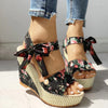 Deze stijlvolle wedge sandalen met bloemenprint bieden comfort en een speelse uitstraling. Perfect voor zowel casual als feestelijke gelegenheden, met verstelbare strikbandjes en een ondersteunende pasvorm.