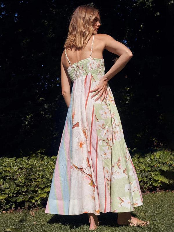 Deze elegante maxi jurk combineert een bloemen- en streeppatroon met een comfortabele pasvorm. Perfect voor casual gelegenheden en zomerse dagen, met een hoge taille en luchtige mouwen voor een stijlvolle uitstraling.