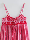 Deze bohemian maxi jurk met een V-hals en luchtige mouwen biedt een elegante en comfortabele pasvorm. Ideaal voor stranduitjes en informele bijeenkomsten, met een hoge taille en tassel-touw voor een stijlvolle uitstraling.