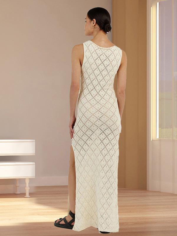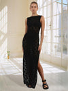 Deze elegante maxi jurk met geometrisch patroon en hoge halslijn biedt een stijlvolle en comfortabele pasvorm. Perfect voor elke gelegenheid, met een lichte stof en een moderne uitstraling die ideaal is voor zowel casual als formele evenementen. Maxi jurk, geometrisch patroon, elegante stijl, mouwloze jurk, split jurk, zomerjurk, comfortabele pasvorm, trendy damesmode, romantische jurk, lichtgewicht jurk