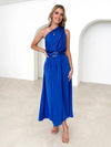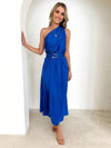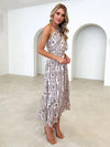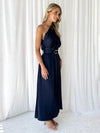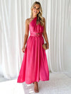 Deze elegante maxi jurk met halternek en effen design biedt een verfijnde uitstraling voor feestelijke avonden. De slanke taille accentueert de vrouwelijke vormen, perfect voor formele gelegenheden.