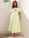 Maxi Jurk met Poff Mouwen en Open Rug