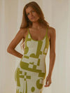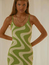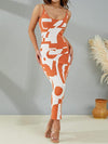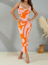 Deze stijlvolle maxi jurk met scoop hals en geometrisch patroon biedt een nauwsluitende pasvorm voor een gedurfde look. Ideaal voor zowel casual als semi-formele gelegenheden.