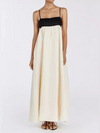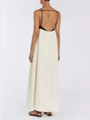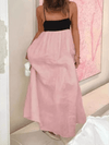 Deze stijlvolle maxi jurk met spaghettibandjes en contrasterende kleuren biedt een luchtige pasvorm. Ideaal voor casual uitjes en strandvakanties, en eenvoudig te combineren met accessoires.