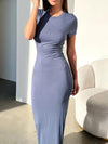 Deze elegante maxi jurk in effen kleur biedt een strakke pasvorm en een moderne uitstraling. Perfect voor zowel casual als formele gelegenheden, met een comfortabele en stijlvolle snit.