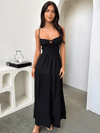 Deze elegante maxi jurk met strikdetail en effen kleur biedt een stijlvolle en comfortabele pasvorm. Ideaal voor zomerse dagen en vakanties, met een flatterende uitstraling voor elke gelegenheid.