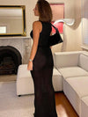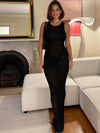 Deze elegante maxi jurk met U-hals en doorzichtig design accentueert je vormen met verfijning. Perfect voor avondgelegenheden, biedt het een stijlvolle en comfortabele uitstraling.